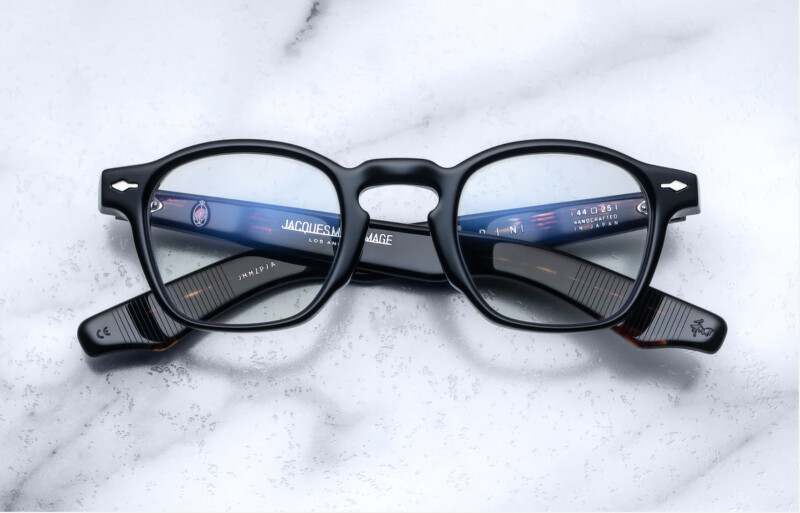 GD的这趟的时尚造型被韩国网友们全部搜出,而其中讨论度最高的就是GD脸上戴的那副黑框眼镜,这款镜架出自美国洛杉矶知名手工镜框品牌Jacques Marie Mage的系列,全镜在日本手工限量打造,受到不少名人喜爱,GD配戴的Zephirin系列全球限量500副,目前在官网上已完售!