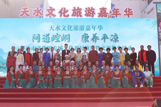 此次活动是“百馆联动”全省优秀群众文艺团队展演的一部分,演出之前在天水主要景区和网红打卡点进行“百团争艳”全省优秀群众文艺团队快闪活动,与广大游客互动,现场热闹非凡,营造主客共享的浓厚文化氛围,致力于宣传平凉悠久的历史、厚重的文化和丰富的旅游资源,不断提高平凉的知名度和美誉度。